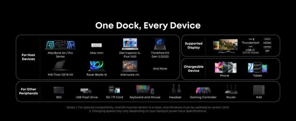 As one of the very first Thunderbolt 5 docks on the market, the A83B5 brings: